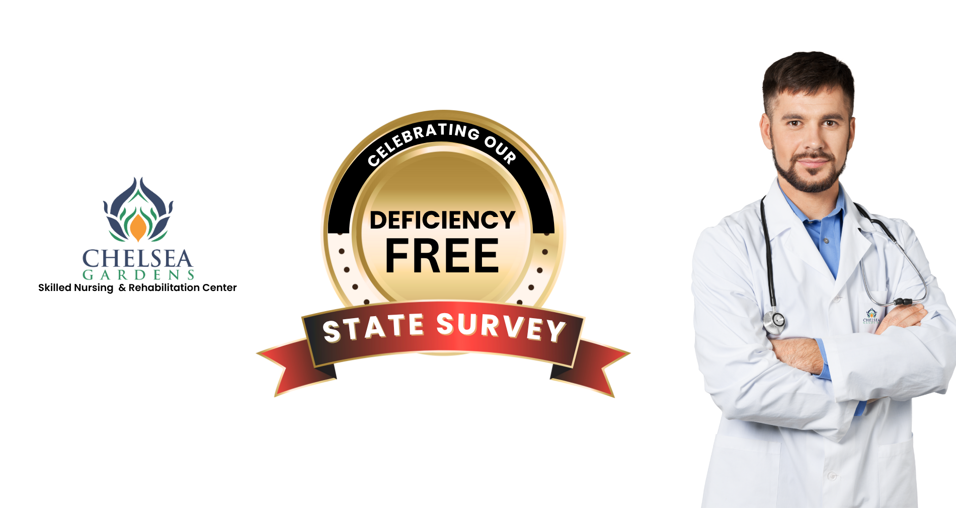 We are proud to announce that Chelsea Gardens Skilled Nursing & Rehabilitation Center has achieved a Deficiency-Free rating during our recent State Survey — a powerful reflection of our team’s unwavering dedication to excellence in care, safety, and service.